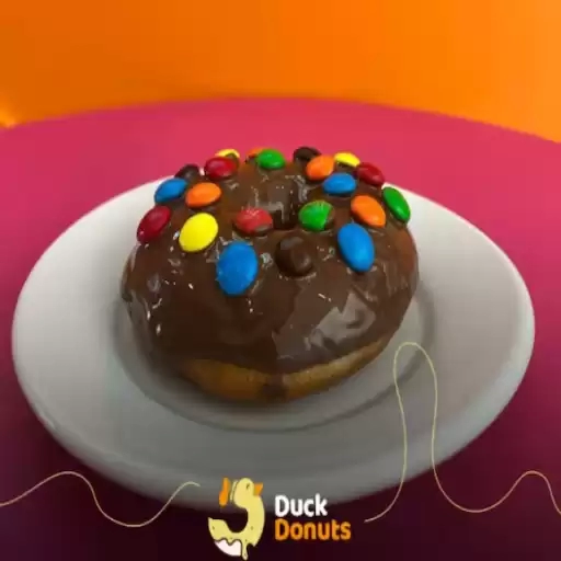 Nosso delicioso donut caseiro com uma cobertura de chocolate ao leite e granulados por cima... Irresistível !