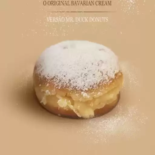 A massa de Donuts inconfundível do Mr. Duck, coberto com açúcar de Confeiteiro e recheado com creme Bavarian - Donuts... Ver completo